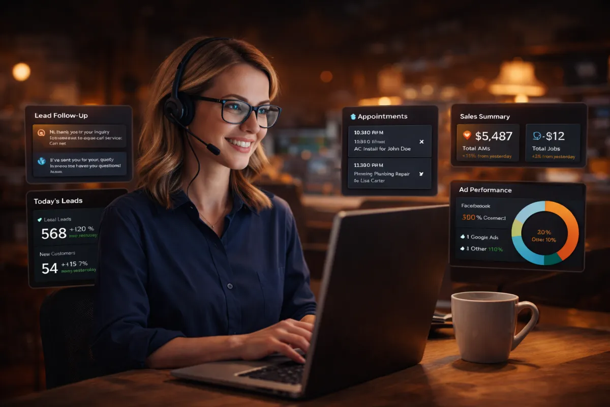 AI receptionist, follow-up, quotes, CRM, ads — all done for you.
